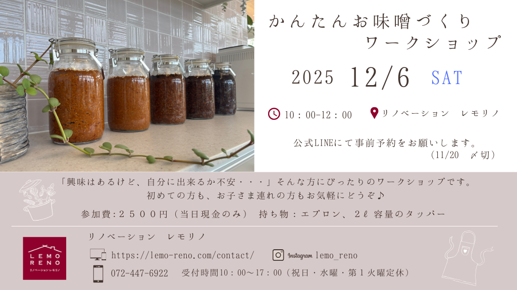 『簡単お味噌づくりワークショップ』開催のお知らせ